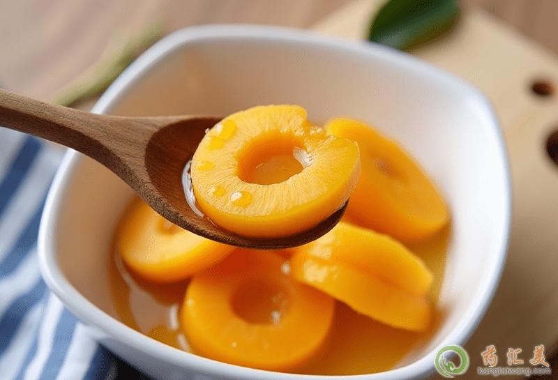 4、把爐子火力調(diào)到早大,煮開以后轉(zhuǎn)為小火煮制半個(gè)小時(shí)左右,看看鍋中黃桃是否已經(jīng)變軟,如果軟了就可以關(guān)火了。