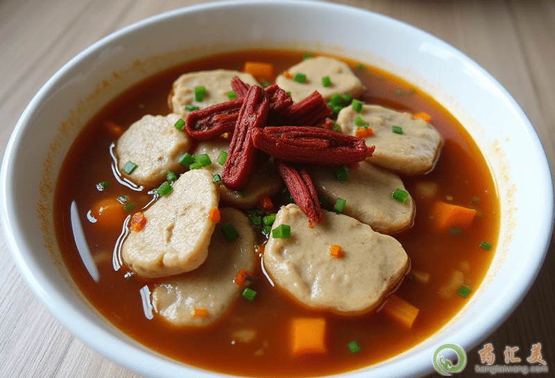 將腌制的肉片炒至一邊,炒胡椒粉、胡椒粉和豆醬,倒入麻辣燙油、湯、水和鹽,將肉片放入鍋中,放入盛有生菜的碗中,撒上胡椒粉、辣椒干和芝麻籽,倒入熱油,煮熟的肉片即可。