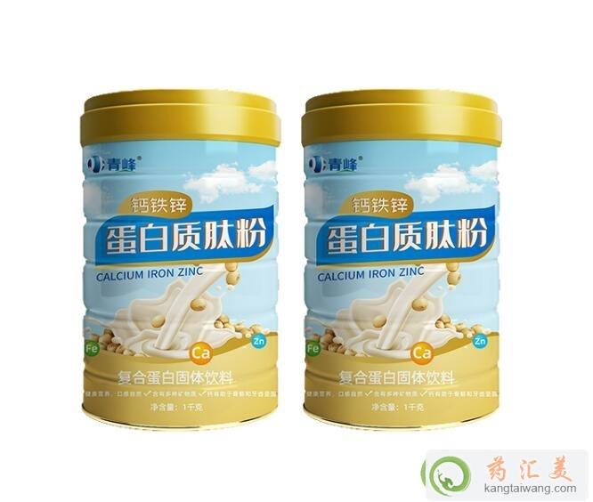 青峰鈣鐵鋅蛋白質肽粉是一款動植物蛋白相結合的蛋白質鈦粉。大豆蛋白與牛乳蛋白四比一的比例組合,動物性蛋白質和大豆蛋白質所含的必需氨基酸種類齊全、比例恰當,人體利用率高,稱為優質蛋白質。