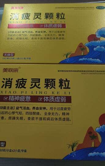 【性狀】美聯康消疲靈顆粒為棕色至棕褐色的顆拉;氣微,味甜、微苦。