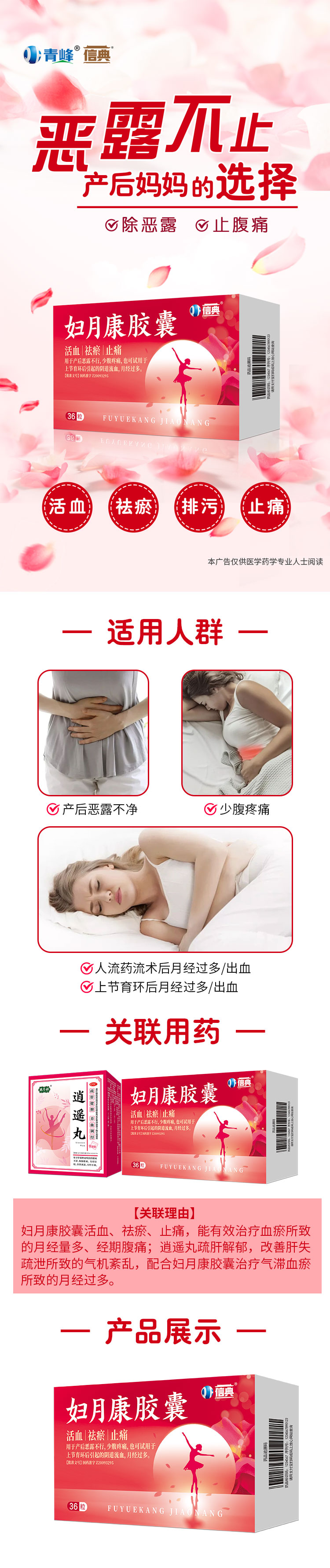 【商品成分】當(dāng)歸、川芎、甘草(炙)、桃仁、干姜(炭)、益母草、紅花、徐長卿。