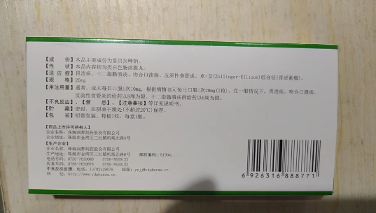 【功能主治/適應(yīng)癥】適用于胃潰瘍、十二指腸潰瘍、吻合口潰瘍、反流性食管炎、卓-艾(Zollinger-Ellison)綜合征(胃泌素瘤)。